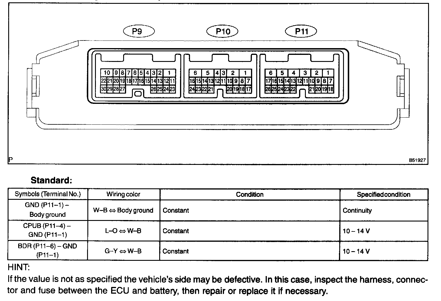 a. Disconnect the ECU connector P11.