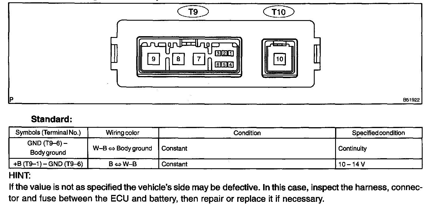 a. Disconnect the ECU connector T9.