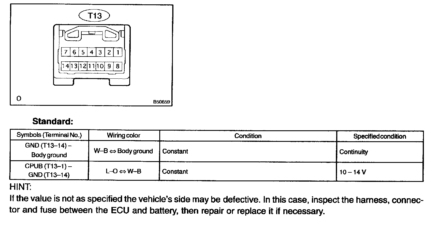 a. Disconnect the ECU connector T13.