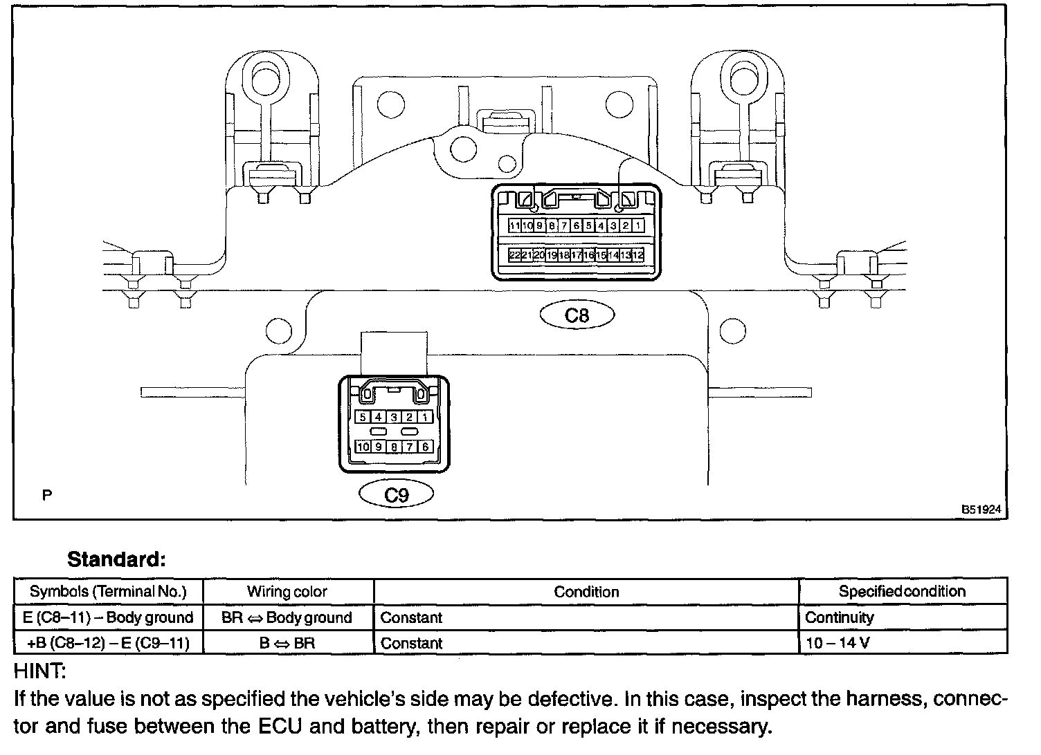 a. Disconnect the ECU connectors C8 and C9.