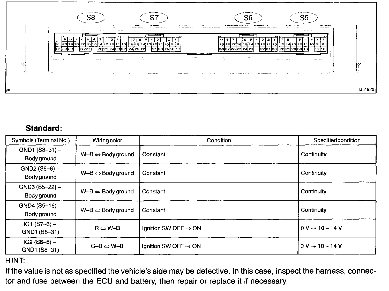 Terminals Of ECU - Check ECM: