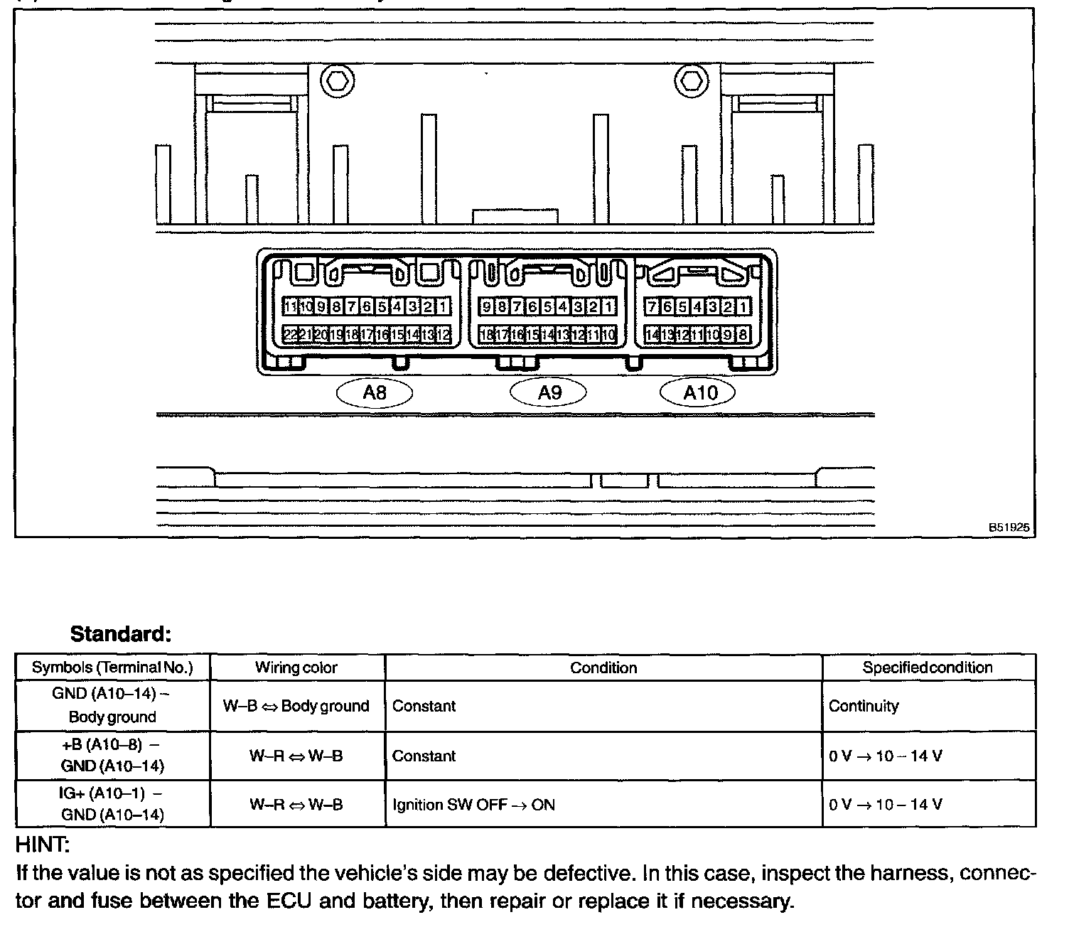 a. Disconnect the ECU connector A10.
