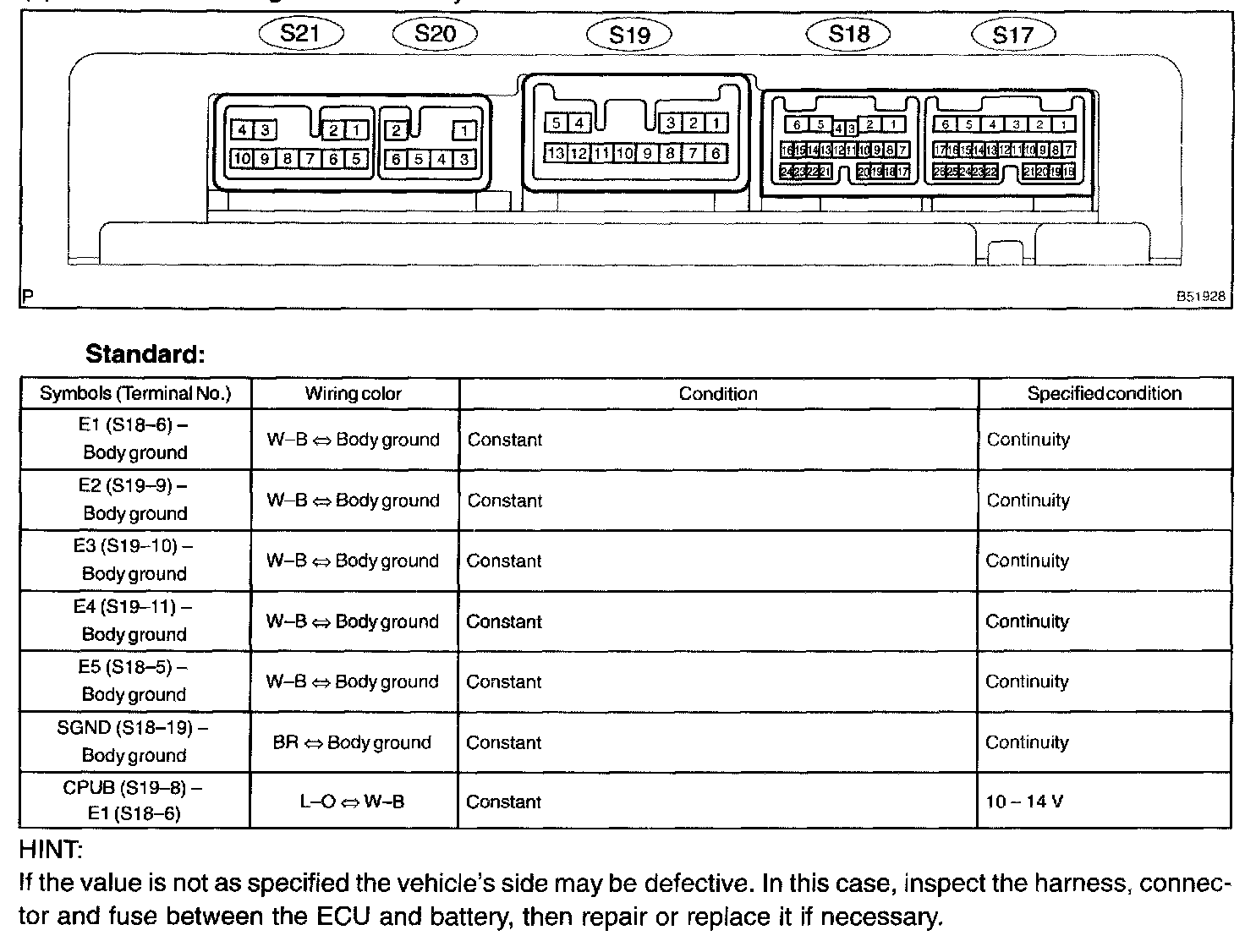 a. Disconnect the ECU connectors S18 and S19.