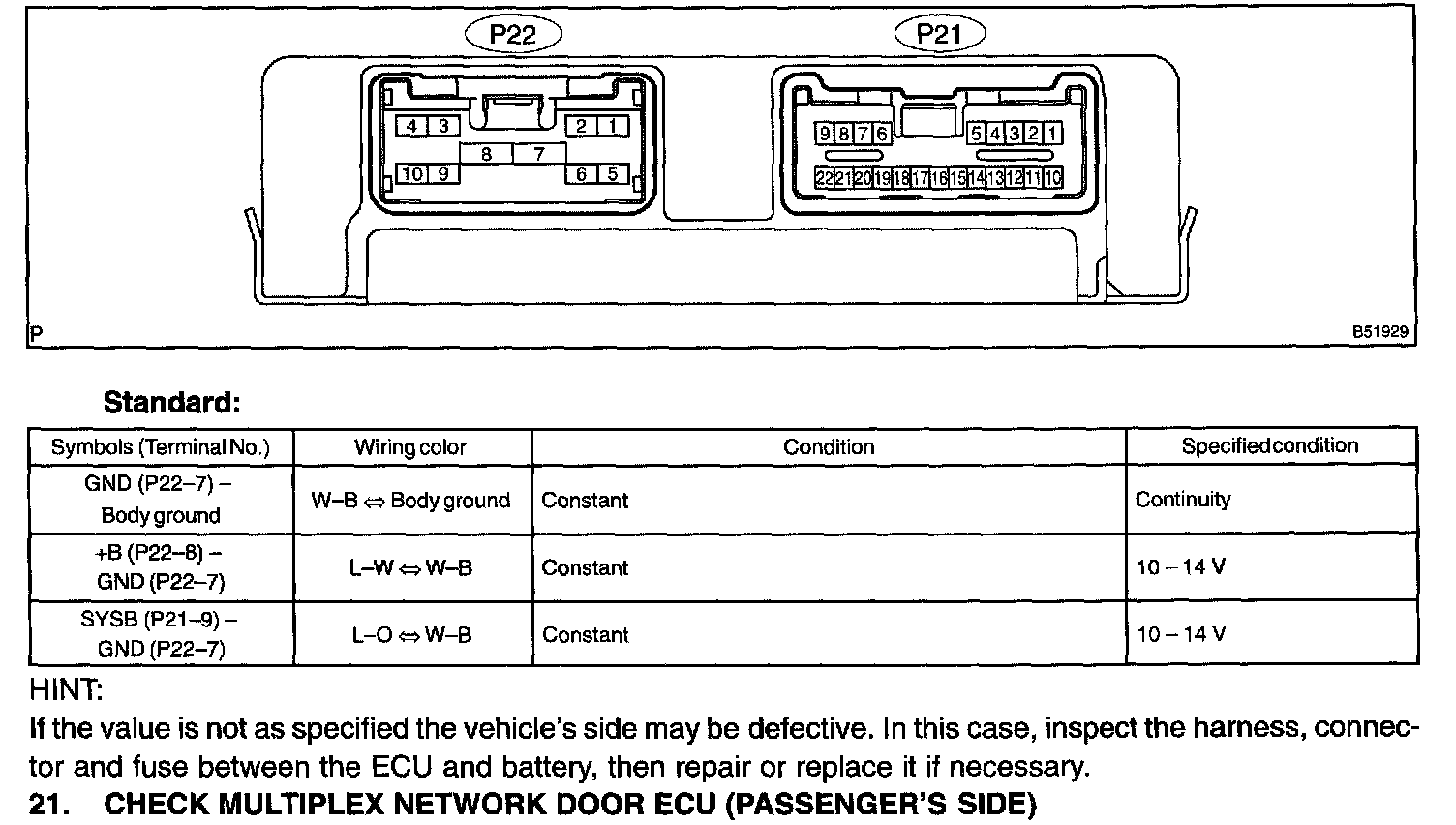 21. CHECK MULTIPLEX NETWORK DOOR ECU (PASSENGER'S SIDE)