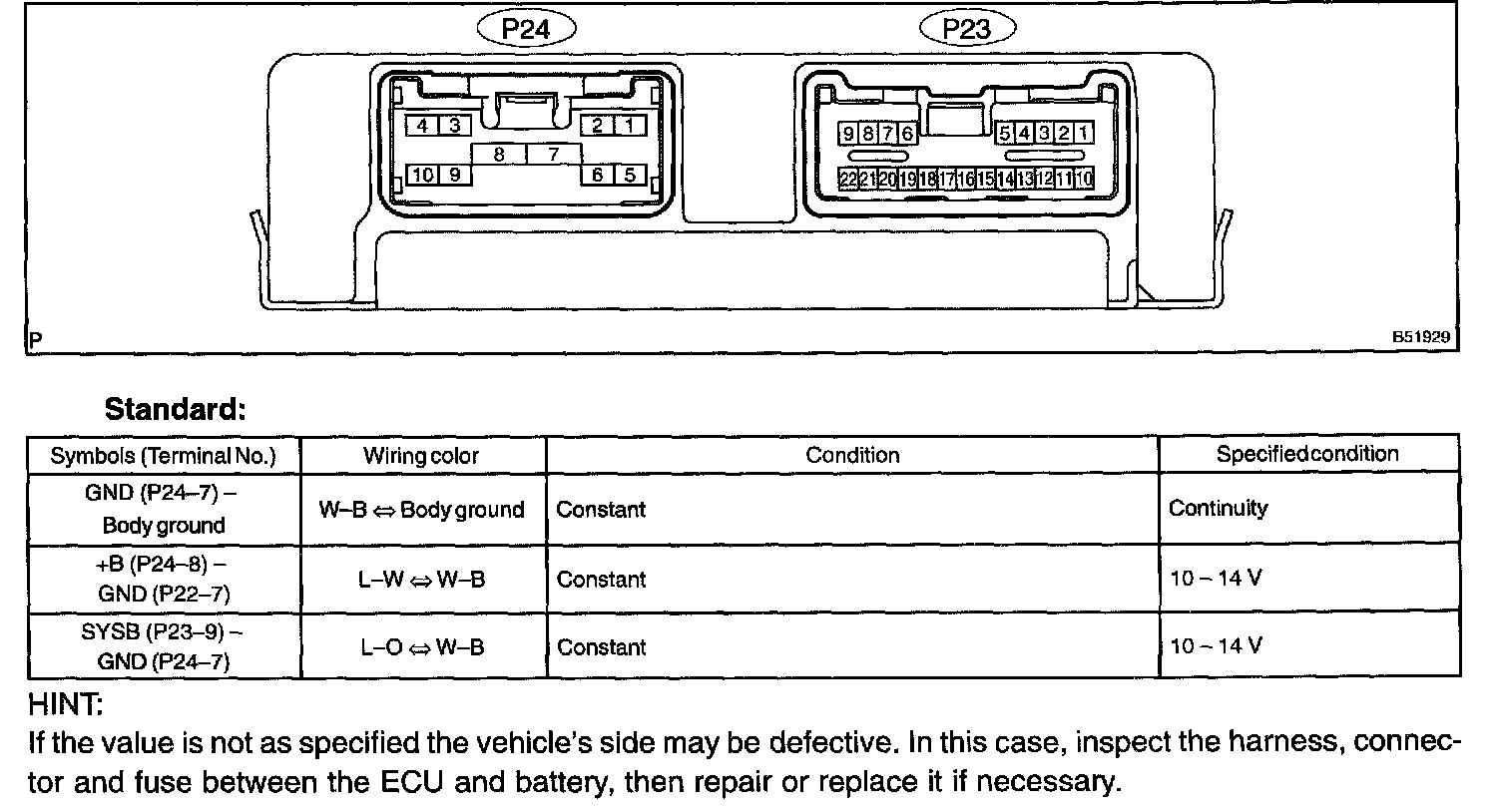 a. Disconnect the ECU connectors P23 and P24.