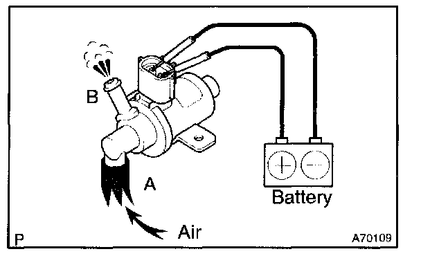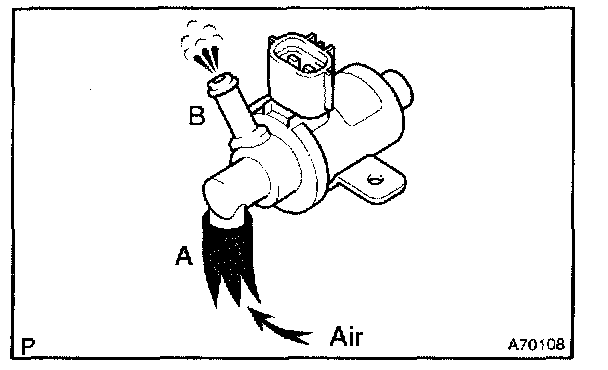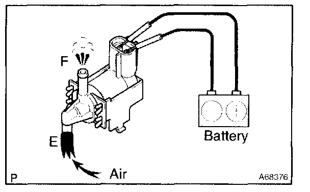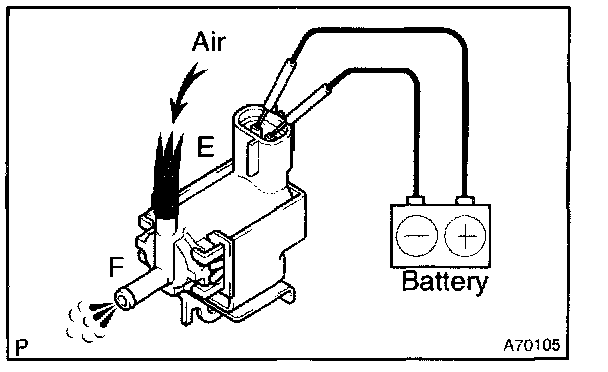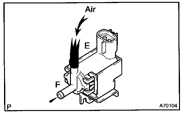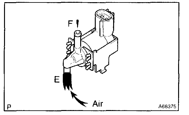 5. Check that air does not flow from port E to port F. If the operation is not as specified, replace the VSV.