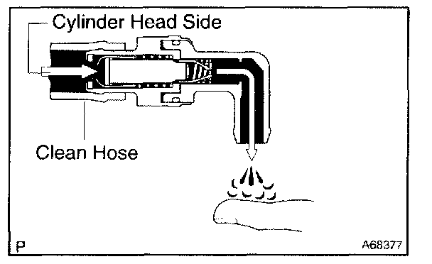 1. Blow air from the cylinder head side of the engine, and check that air passes through easily.