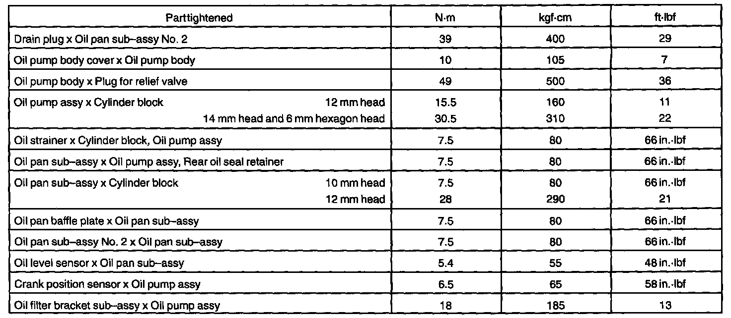 Torque Specification