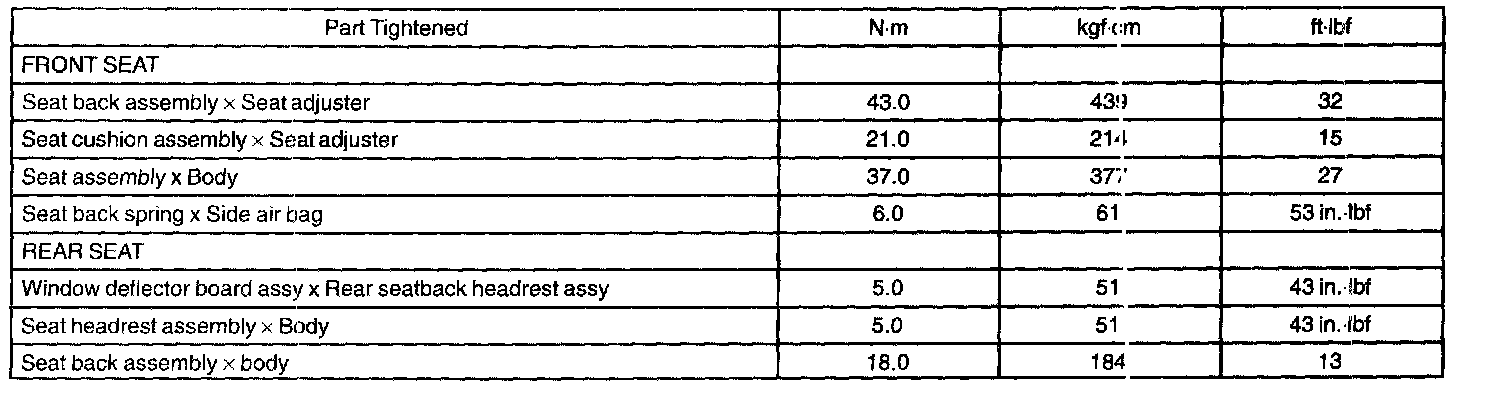 Seat - Torque Specification: