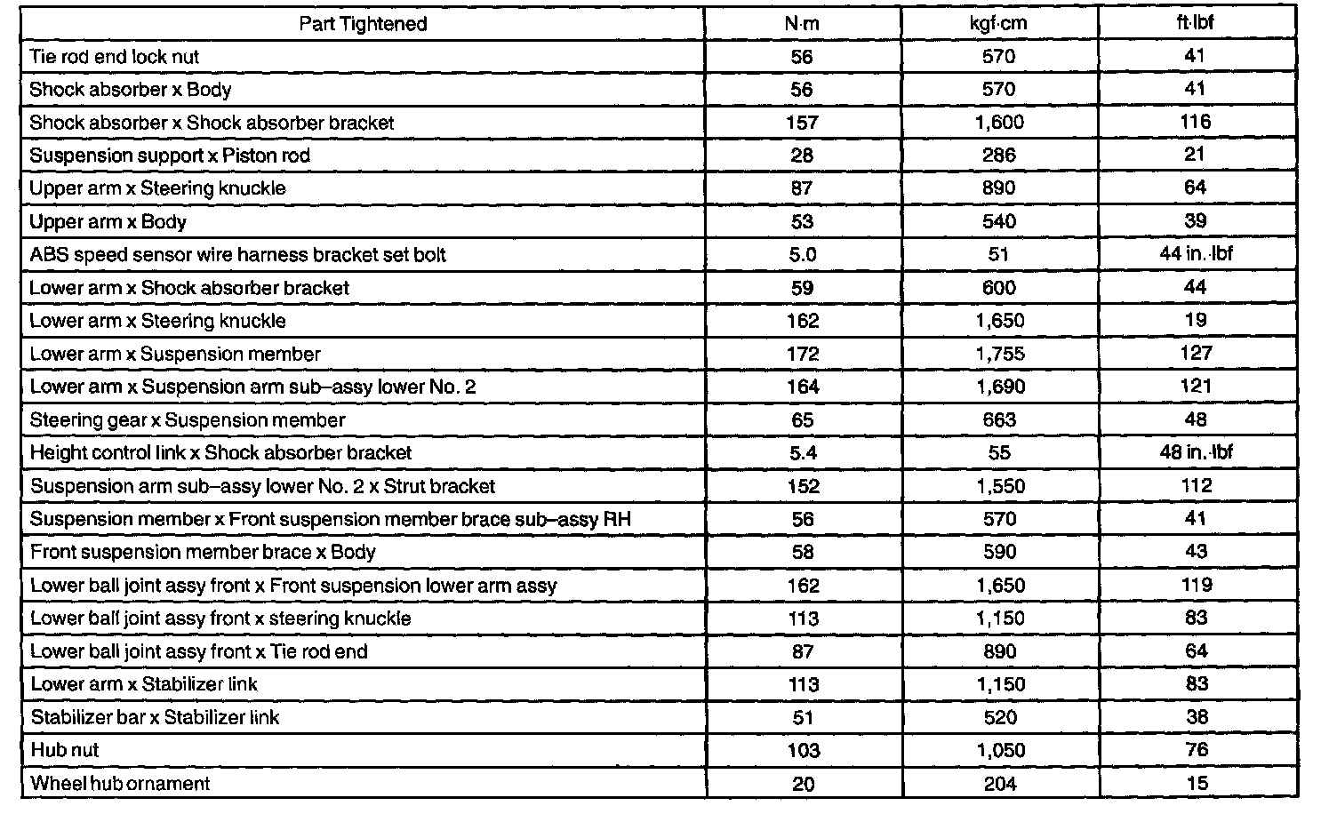 Torque Specification