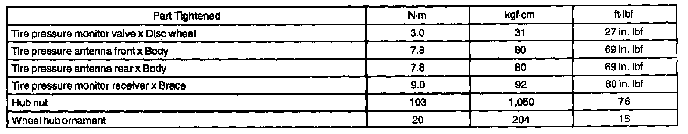 Torque Specification