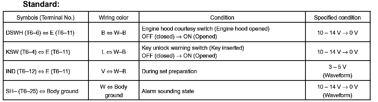 If the result is not as specified, the theft warning ECU assy may malfunction.