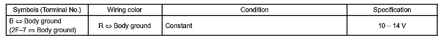 b. Disconnect the 2F driver side junction block connector, and check the voltage of the terminal of the disconnected connector.