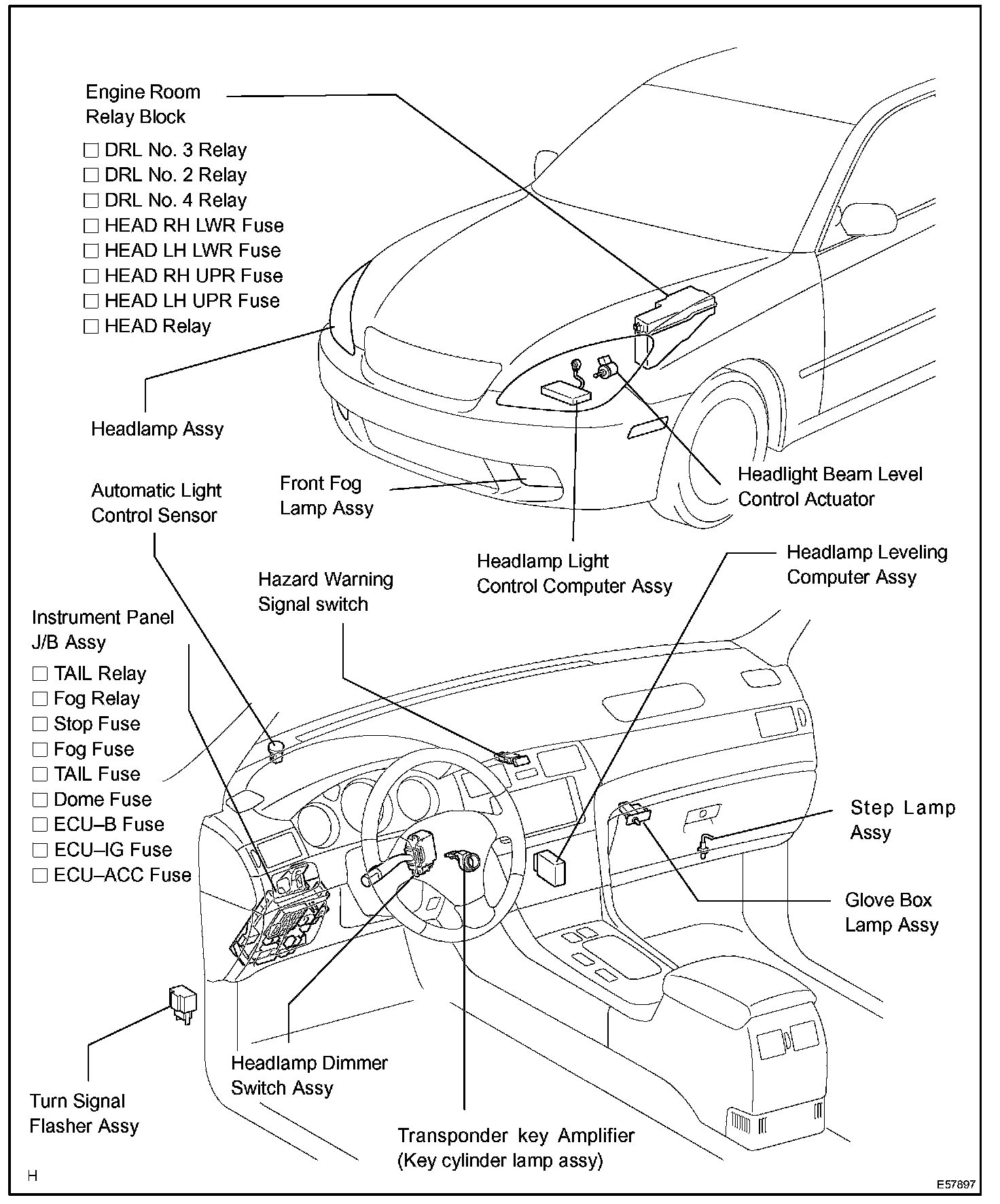 Headlamp Alignment Control Module: Locations