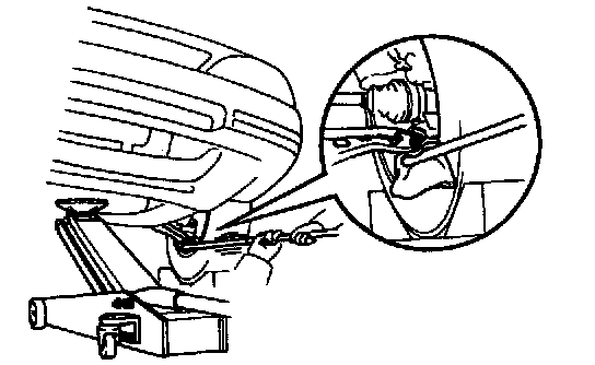 - Lower the jack until there is about half a load on the front coil spring. Place stands under the vehicle for safety.