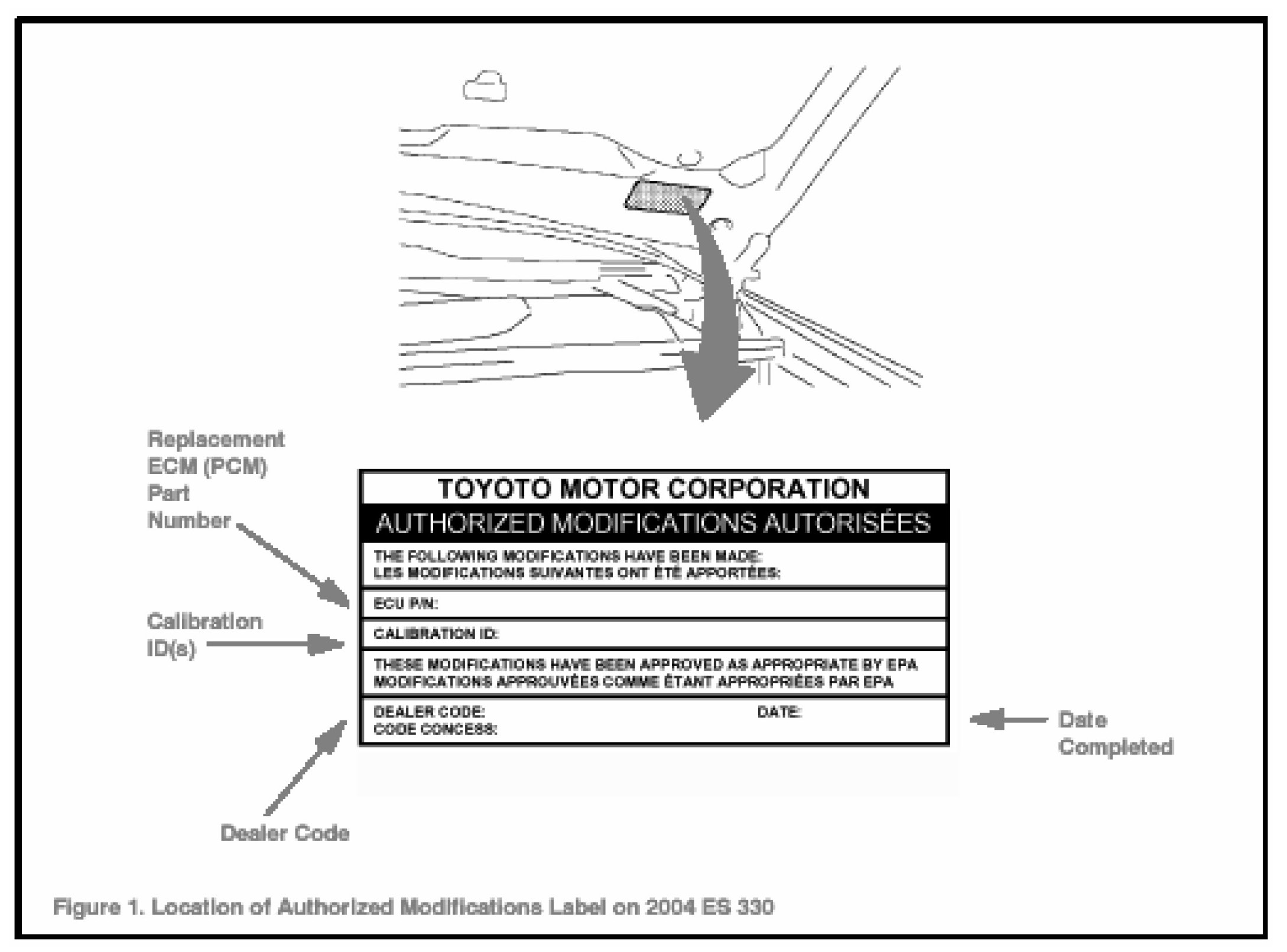- Before proceeding, verify the ECM (PCM) calibration has NOT been updated by checking for the Authorized Modifications Label (shown in Step 1 of the Repair Procedure).