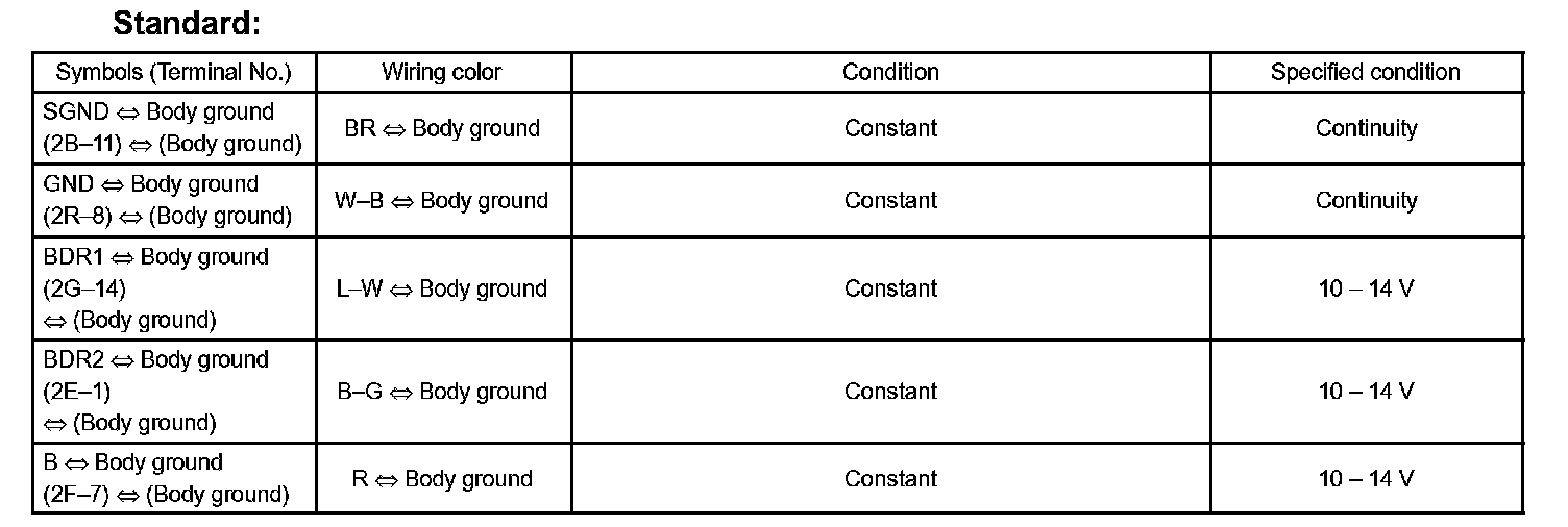 b. Check the voltage and continuity of each terminal of the wire harness side connectors.