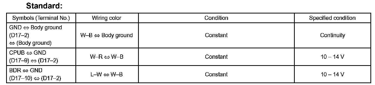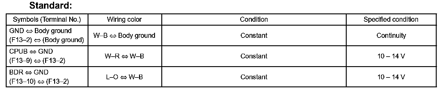b. Check the voltage and continuity of each terminal of the wire harness side connector.
