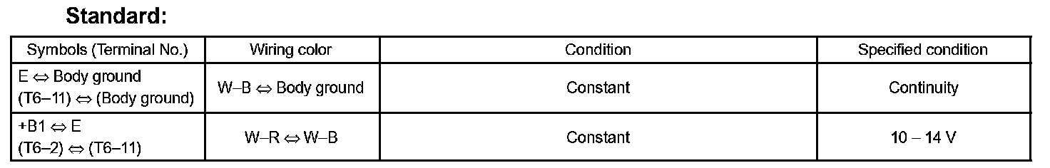 HINT: If the value is not as specified, the vehicle may be defective. In this case, check the wire harness, connector and fuse between the ECU and battery, then repair or replace it if necessary.