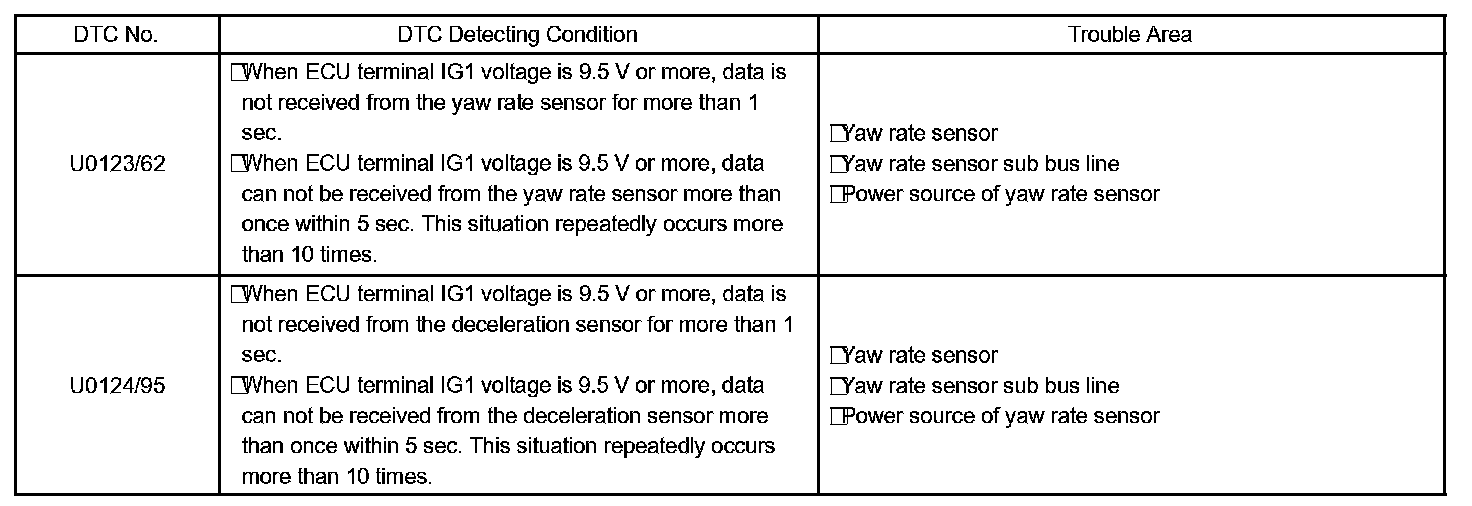 YAW RATE SENSOR COMMUNICATION STOP MODE