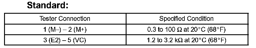 (2) Using voltmeter, connect the positive (+) tester probe to terminal 3 (VC), and negative (-) tester probe to terminal 2 (E2G).