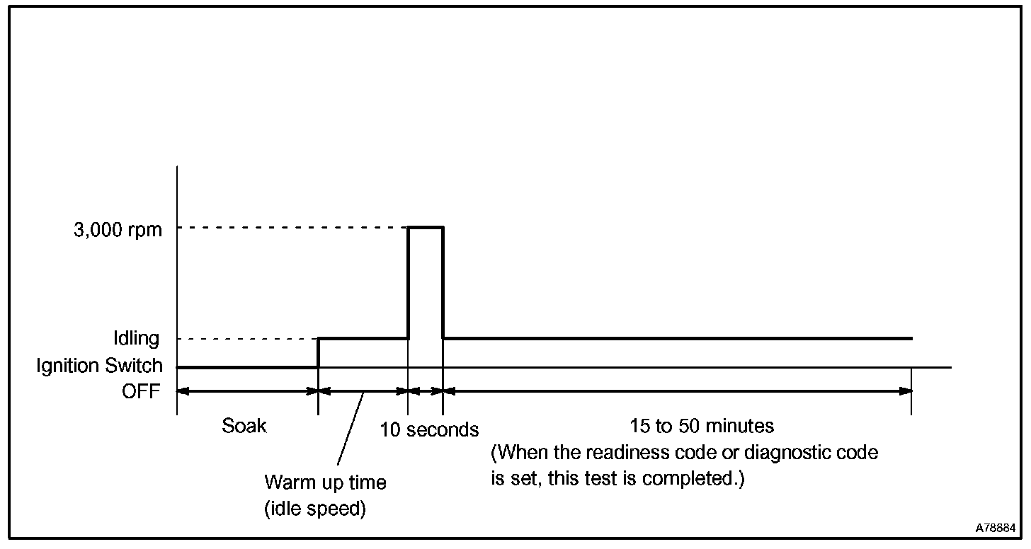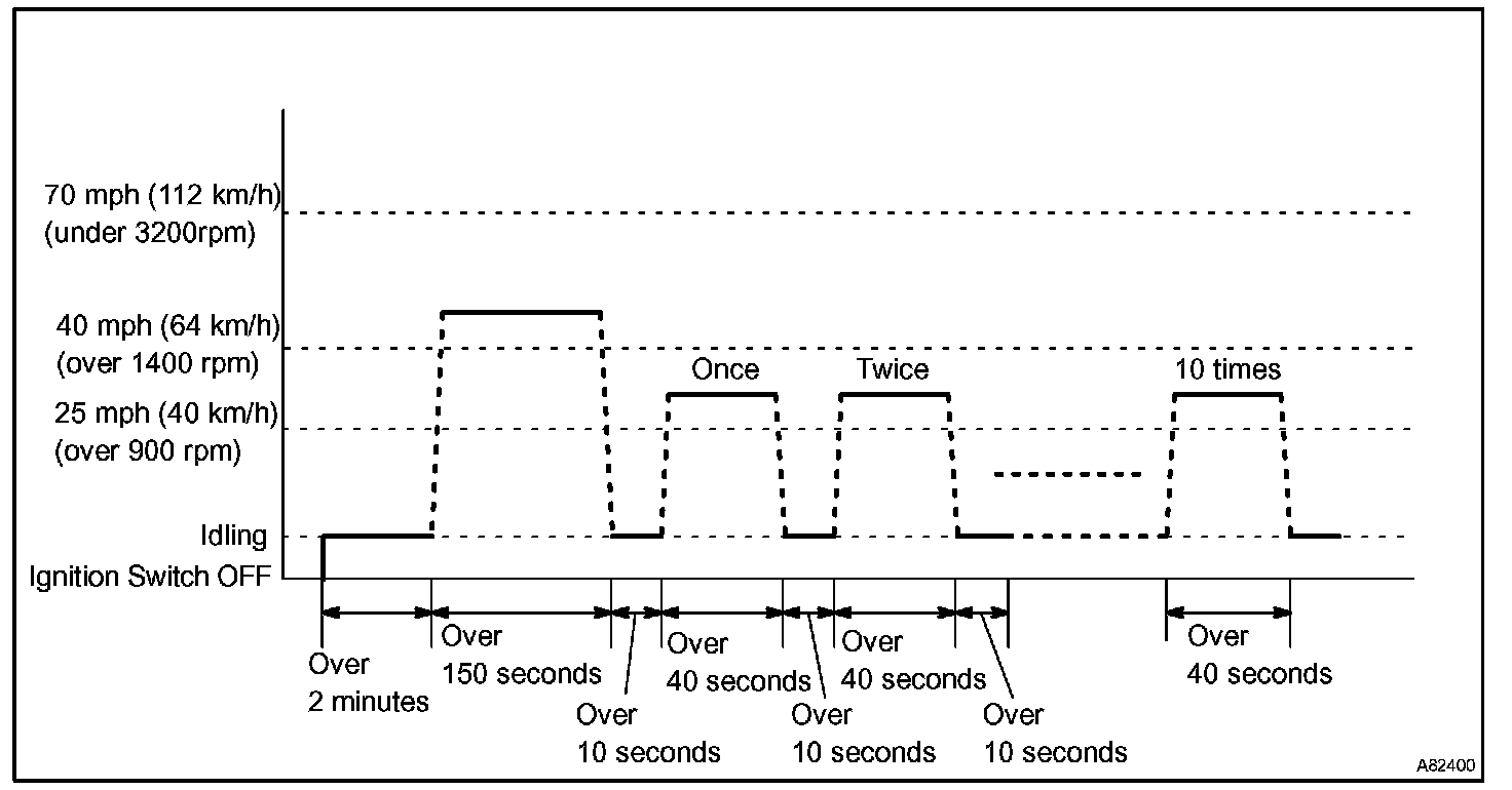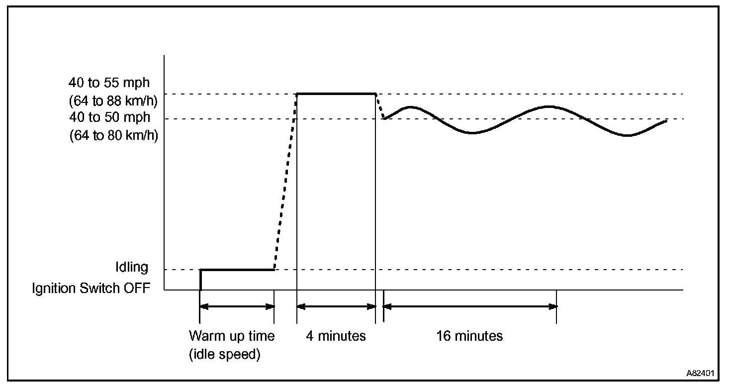 If IAT was less than 10 °C (50 °F) when the engine was started, drive the vehicle at 40 to 55 mph (64 to 88 km/h) for additional 4 minutes.