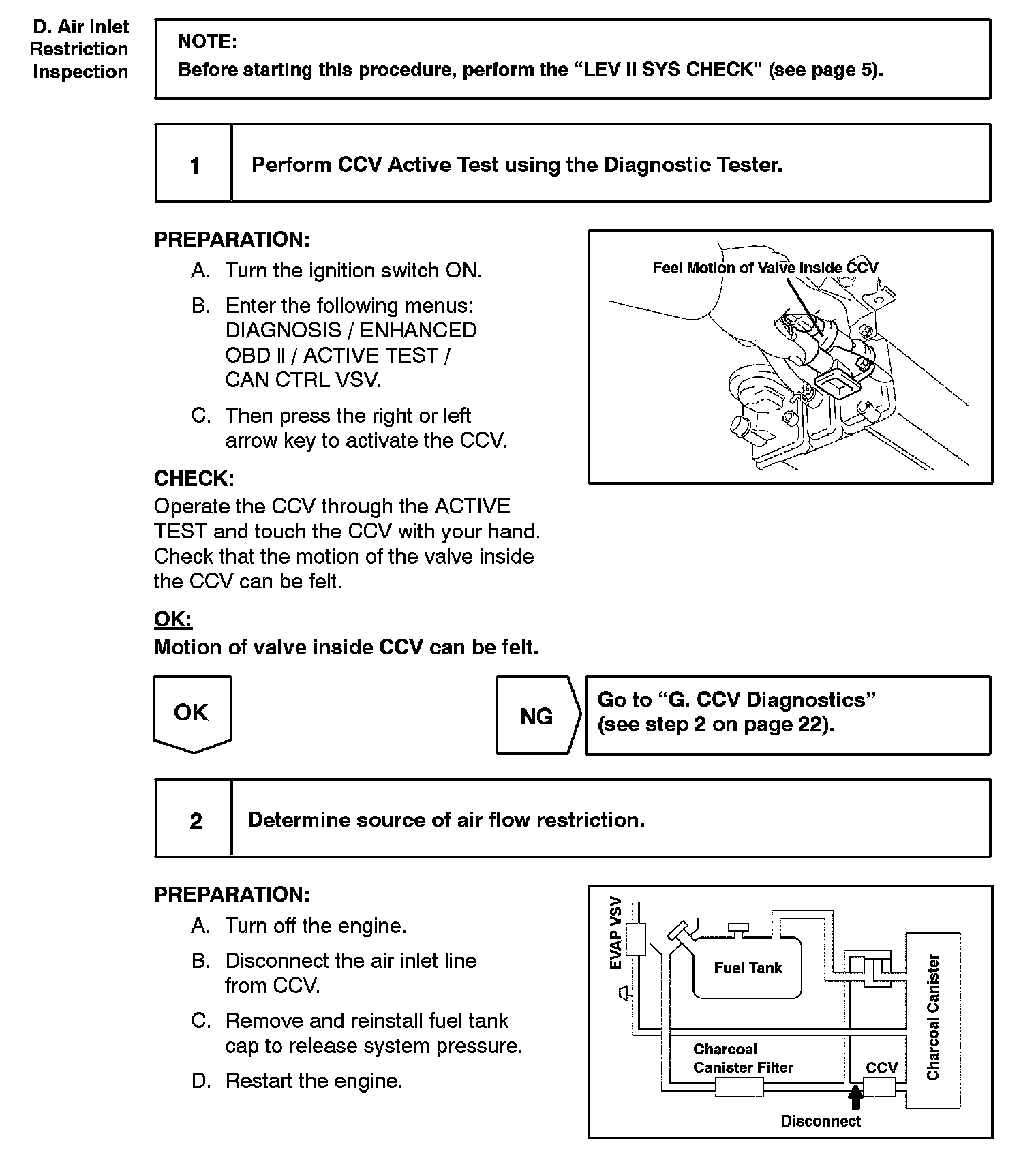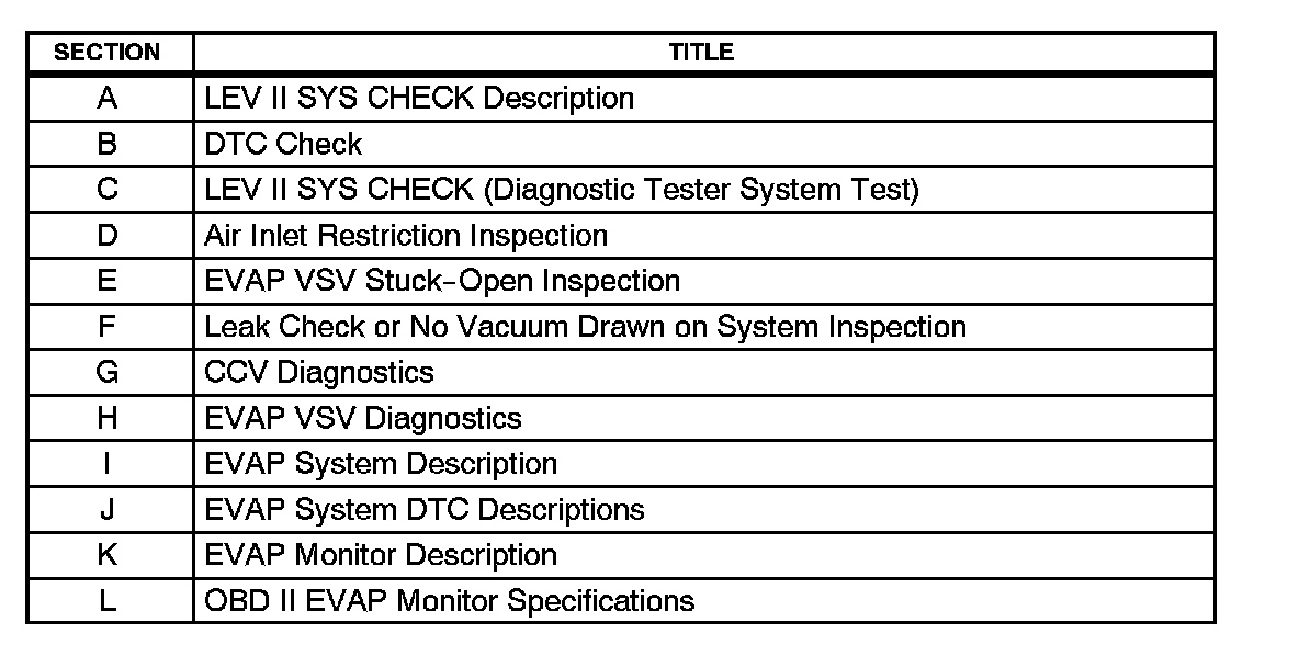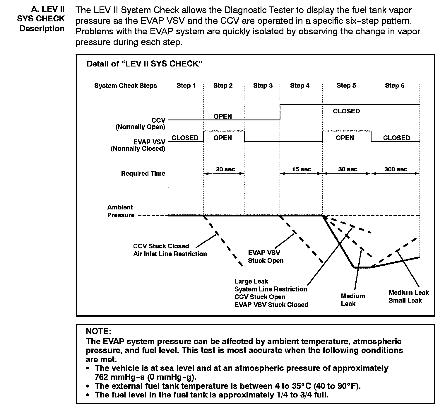 ^ January 6, 2005: A change has been made to the diagram in section "A. LEV II SYS CHECK Description" ("CCV Stuck Open" changed to "EVAP VSV Stuck Open").