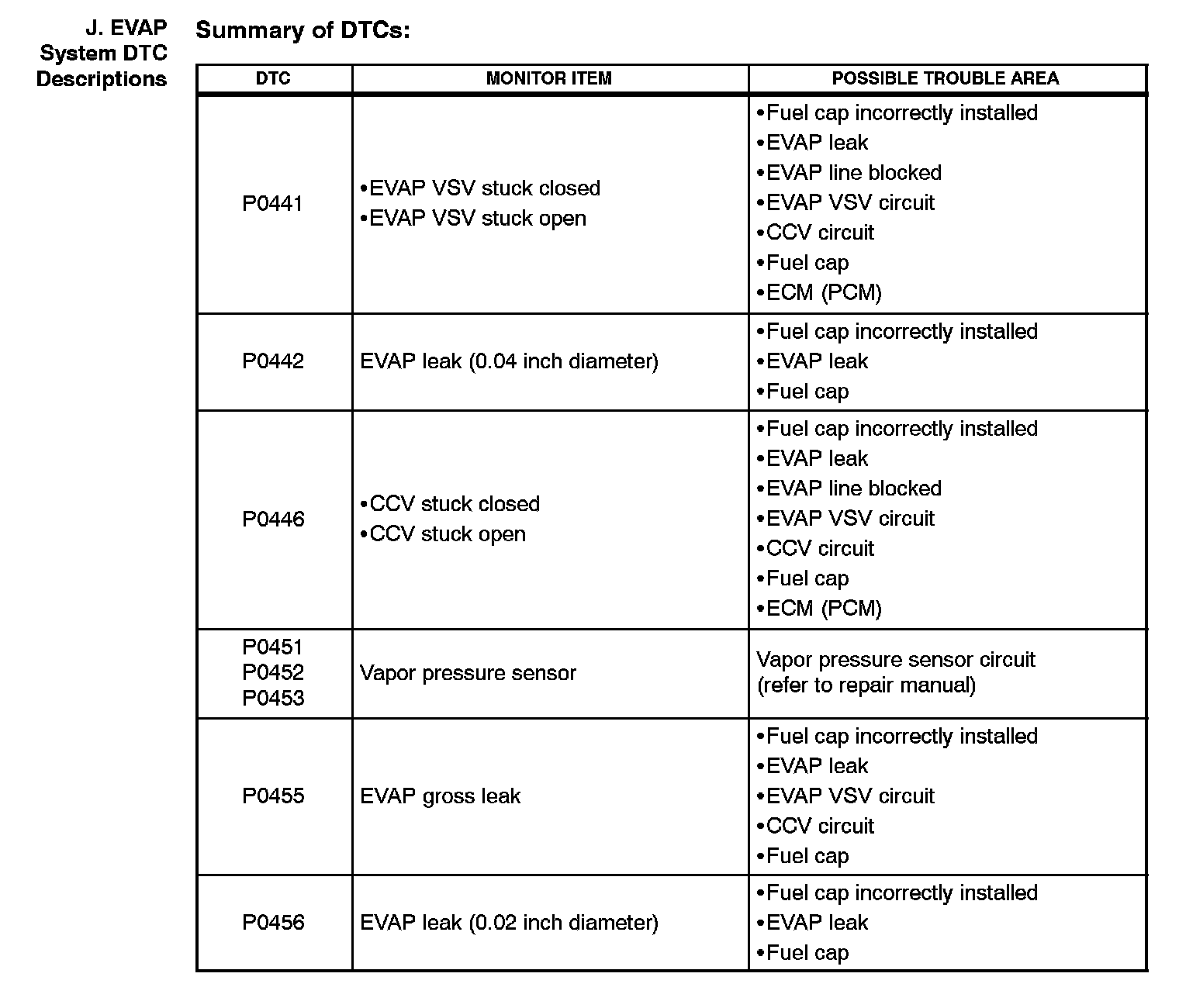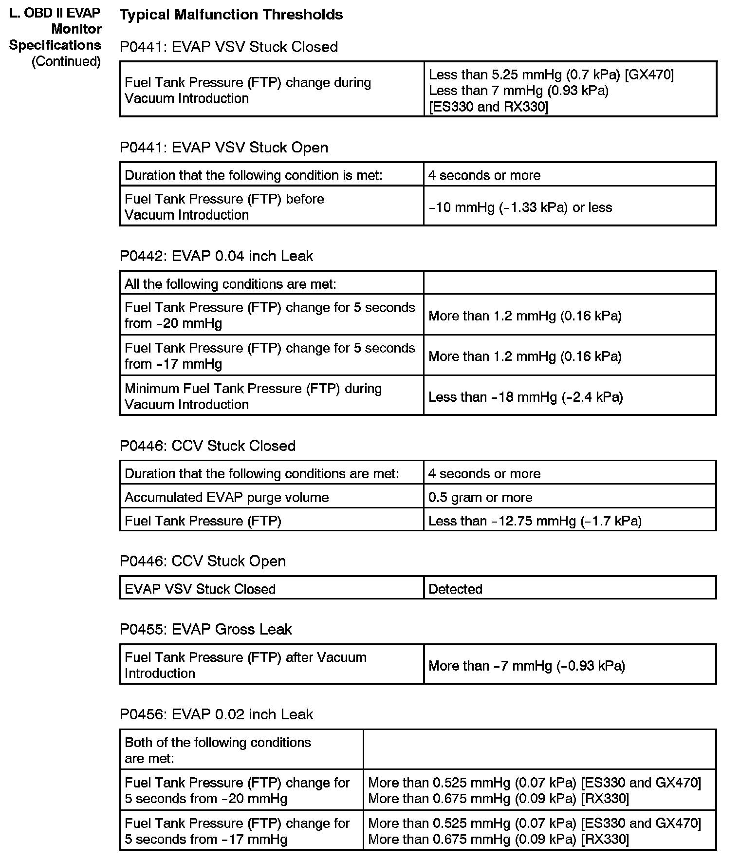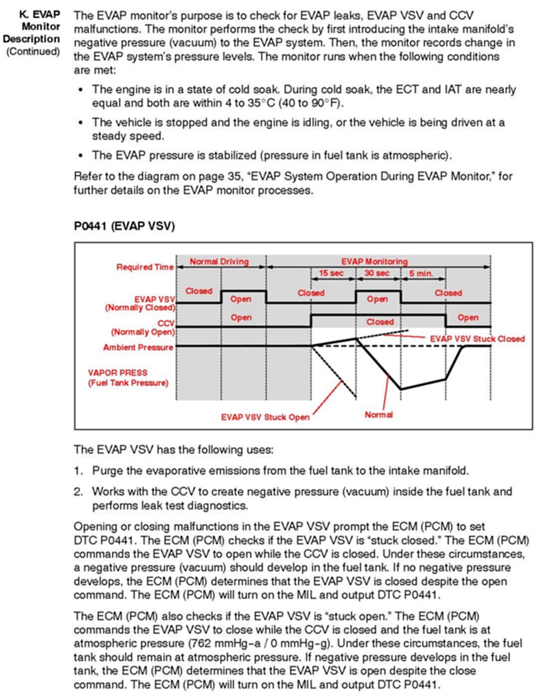 ^ January 6, 2005: A change has been made to the diagram in section "A. LEV II SYS CHECK Description" ("CCV Stuck Open" changed to "EVAP VSV Stuck Open").