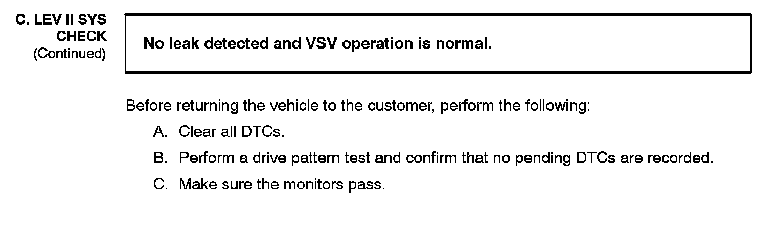 Once the vehicle condition is corrected, the LEV II System Check can also be used to confirm the repair before the vehicle is returned to the customer.