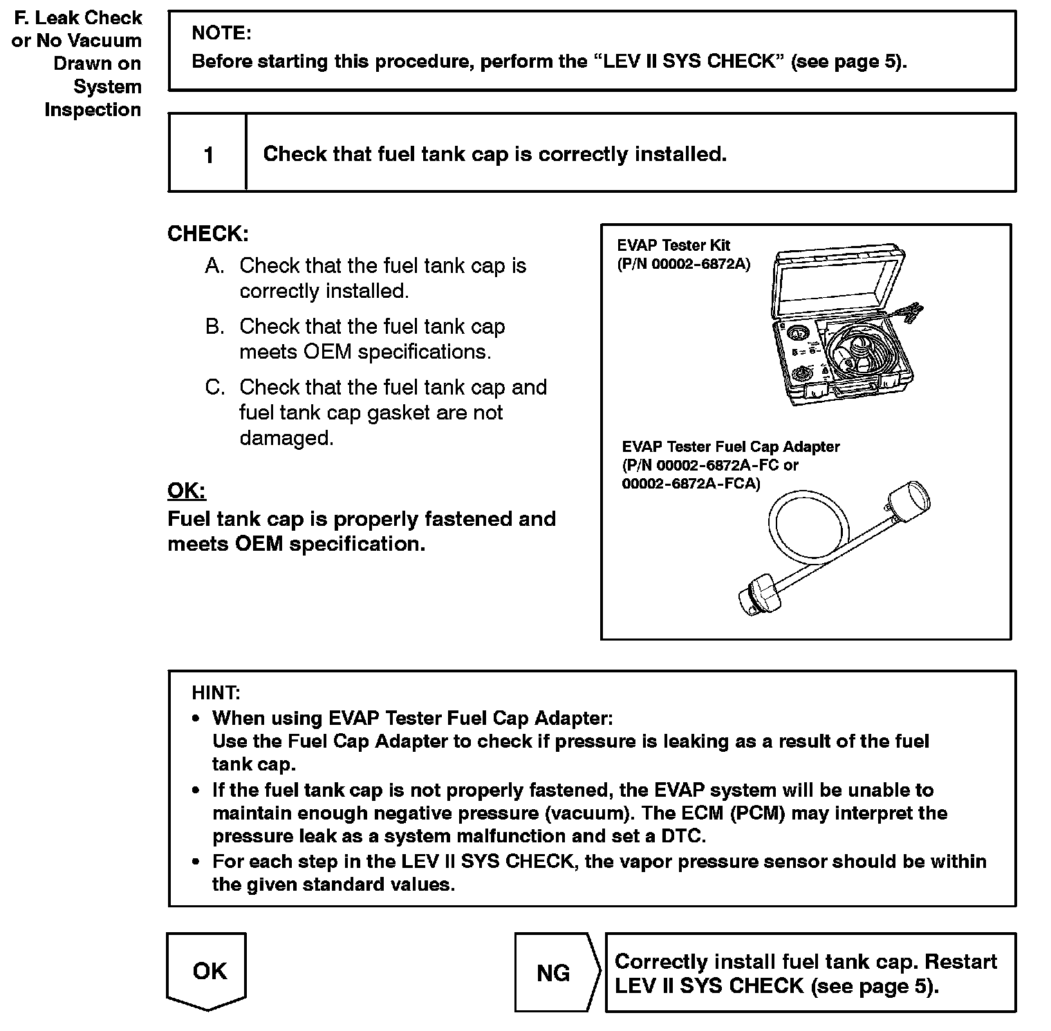 The inspection procedure using the LEV II System Check (LEV II SYS CHECK) is described in this bulletin. This function is available using a Diagnostic Tester with version 11.0a software (or newer).
