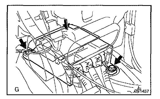 - When installing the airbag sensor assy center, be careful that the SRS wiring does not interfere with other parts and is not pinched between other parts.