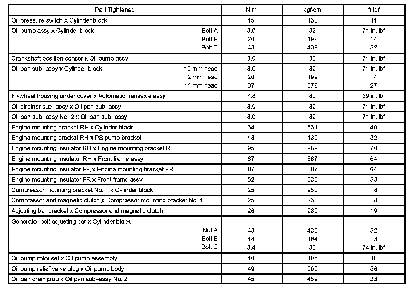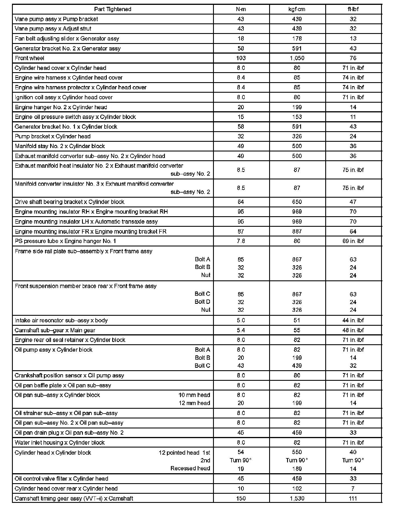 Torque Specifications