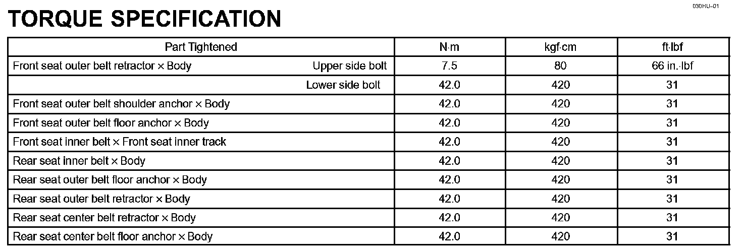 Seat Belt - Torque Specification: