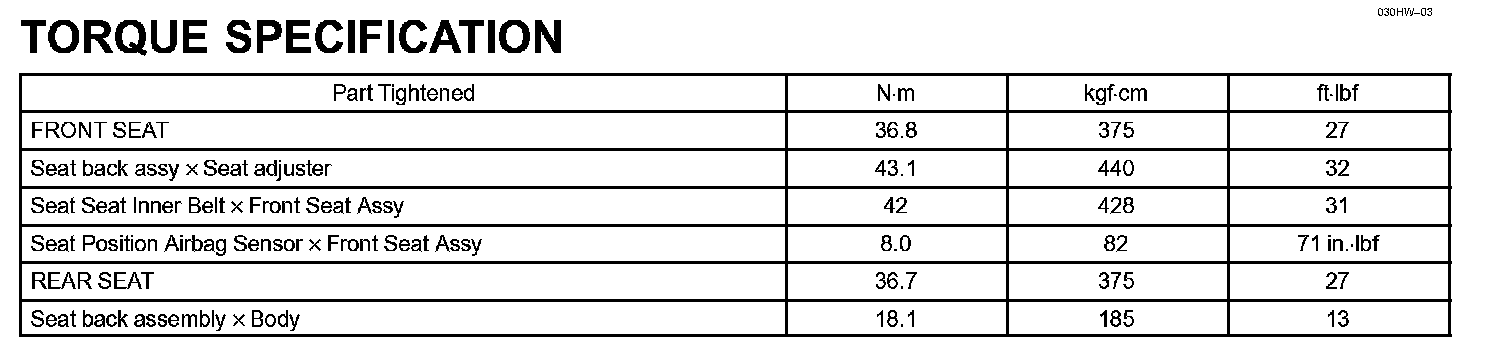 Seat - Torque Specification: