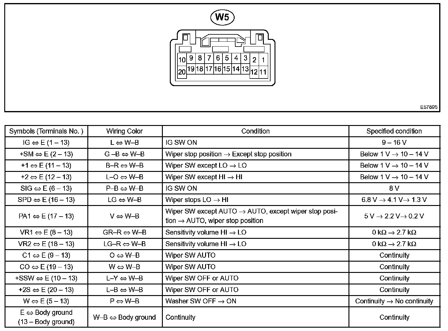 Terminals Of ECU/Pinouts - Windshield Wiper Relay Assy: