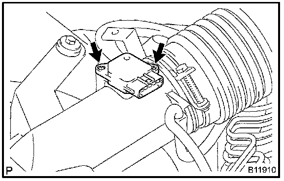 b. Install the MAF meter with the 2 bolts and stay.