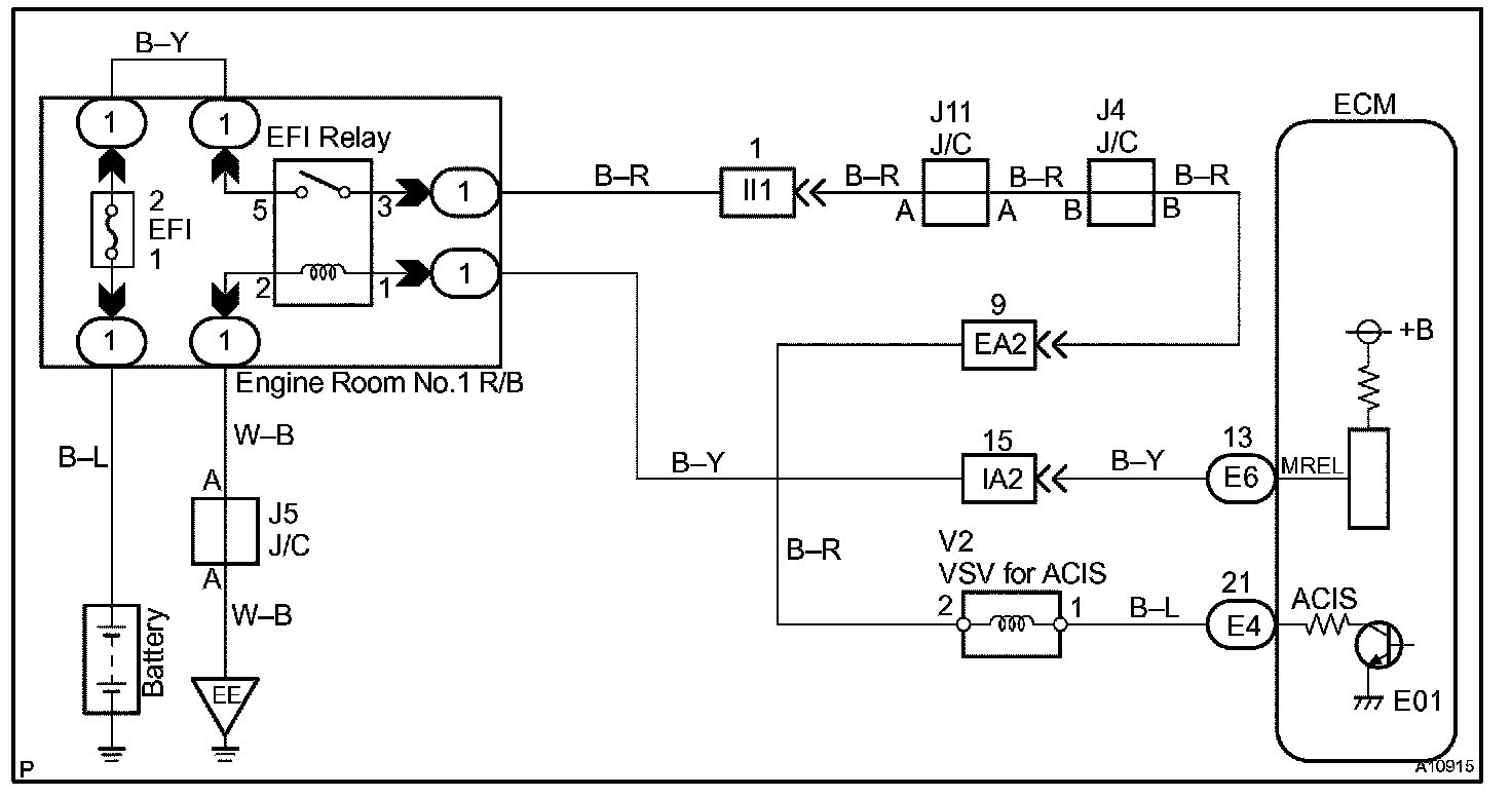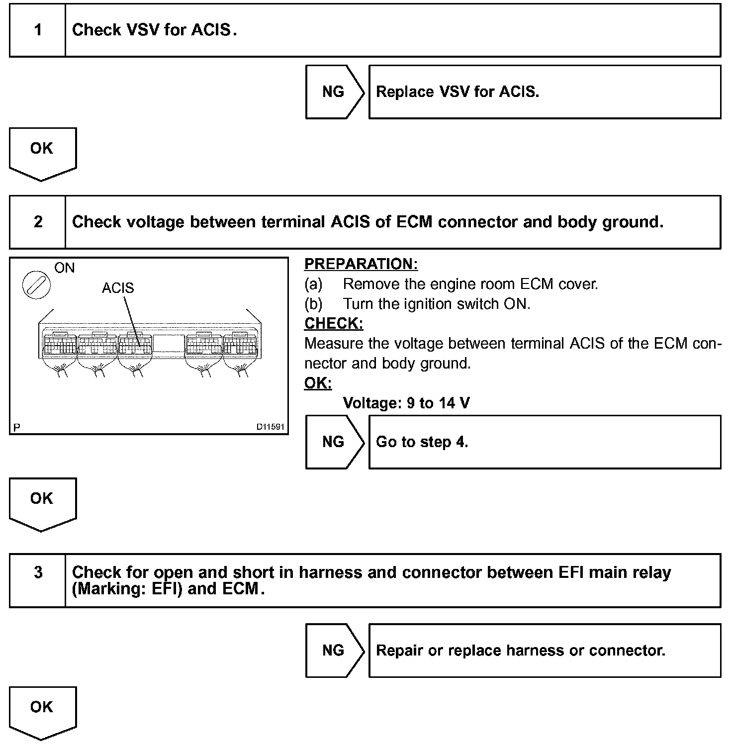 CIRCUIT DESCRIPTIONThis circuit opens and closes the Intake Air Control Valve (IACV) in response to the engine load in order to increase the intake efficiency.