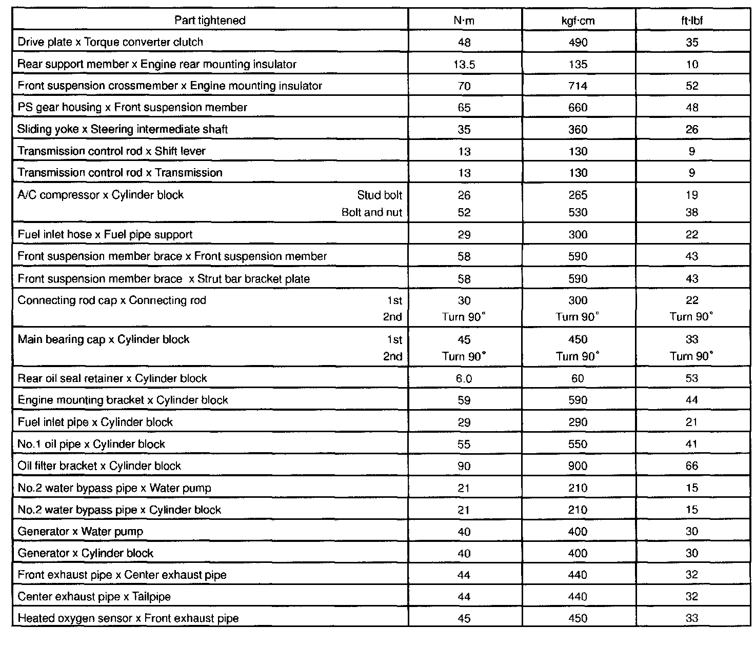 TORQUE SPECIFICATION