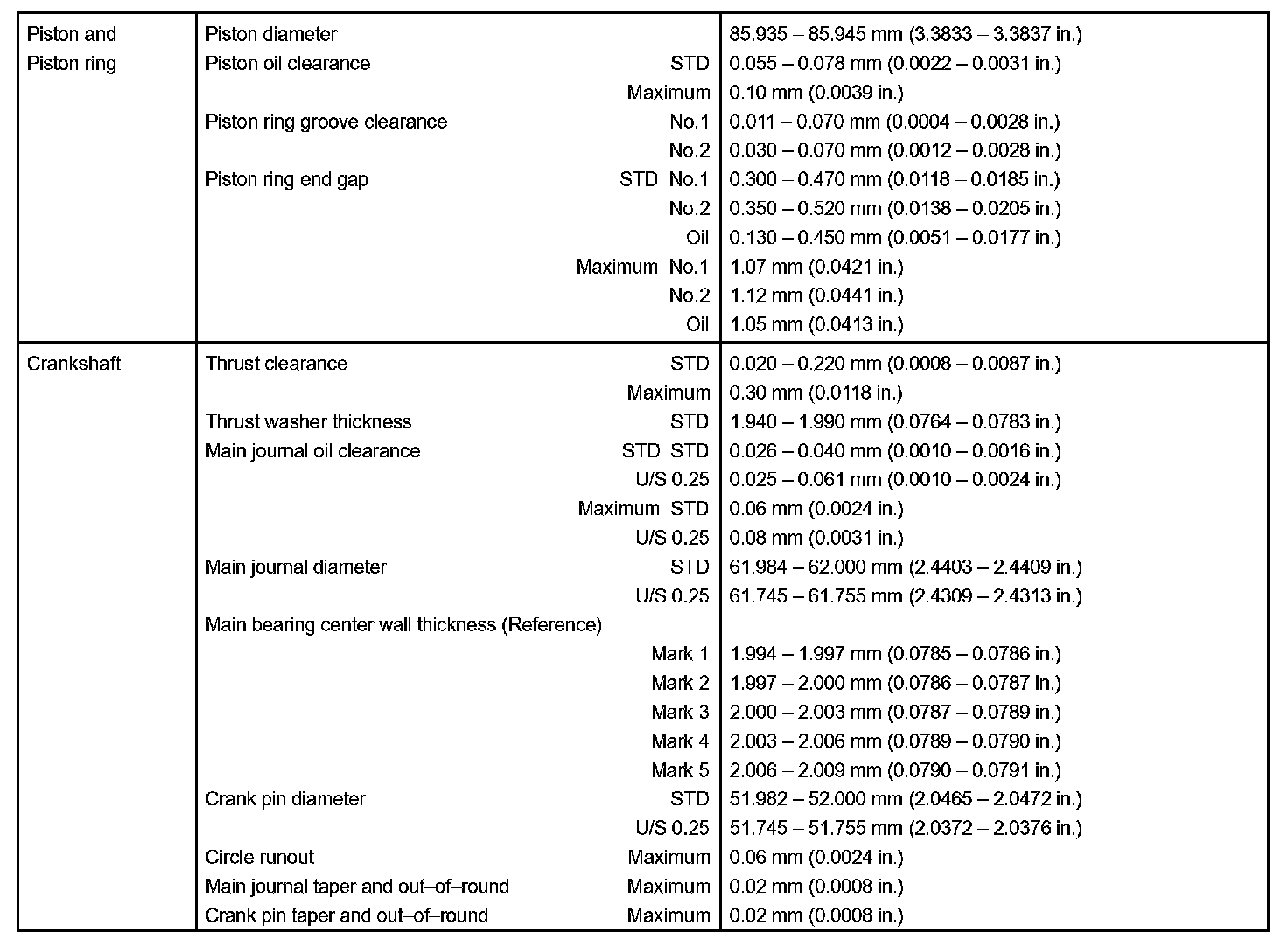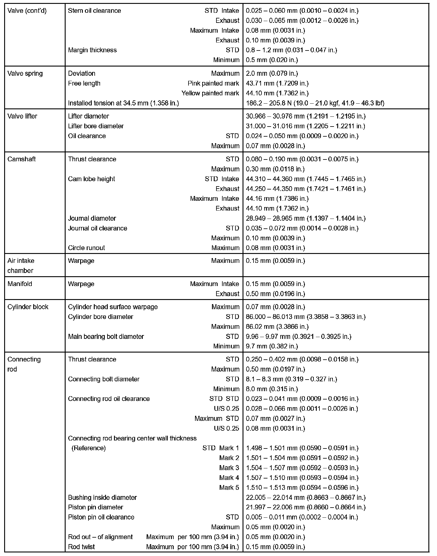 Engine Mechanical - Service Data Part 2: