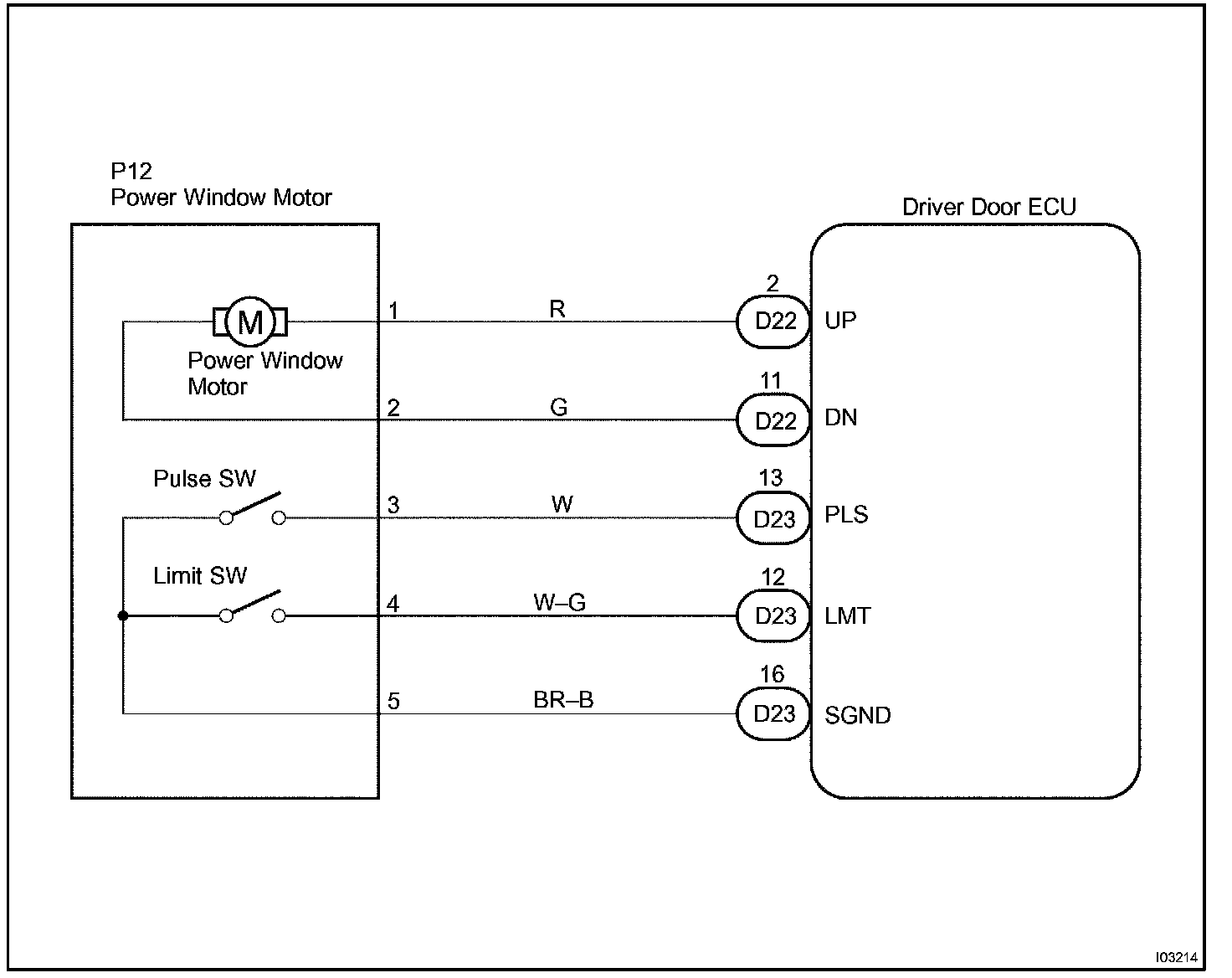 Jam protection limit switch is built-in the power window motor. This switch functions to turn "OFF" before the top dead center, and ECU reads this "OFF" signal resulting in closing the window fully.