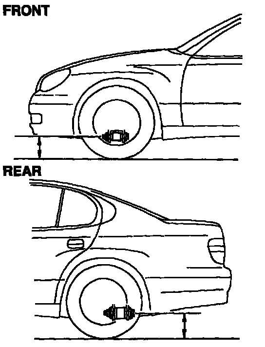 Measure from the ground to the center of the lower suspension arm mounting bolt.