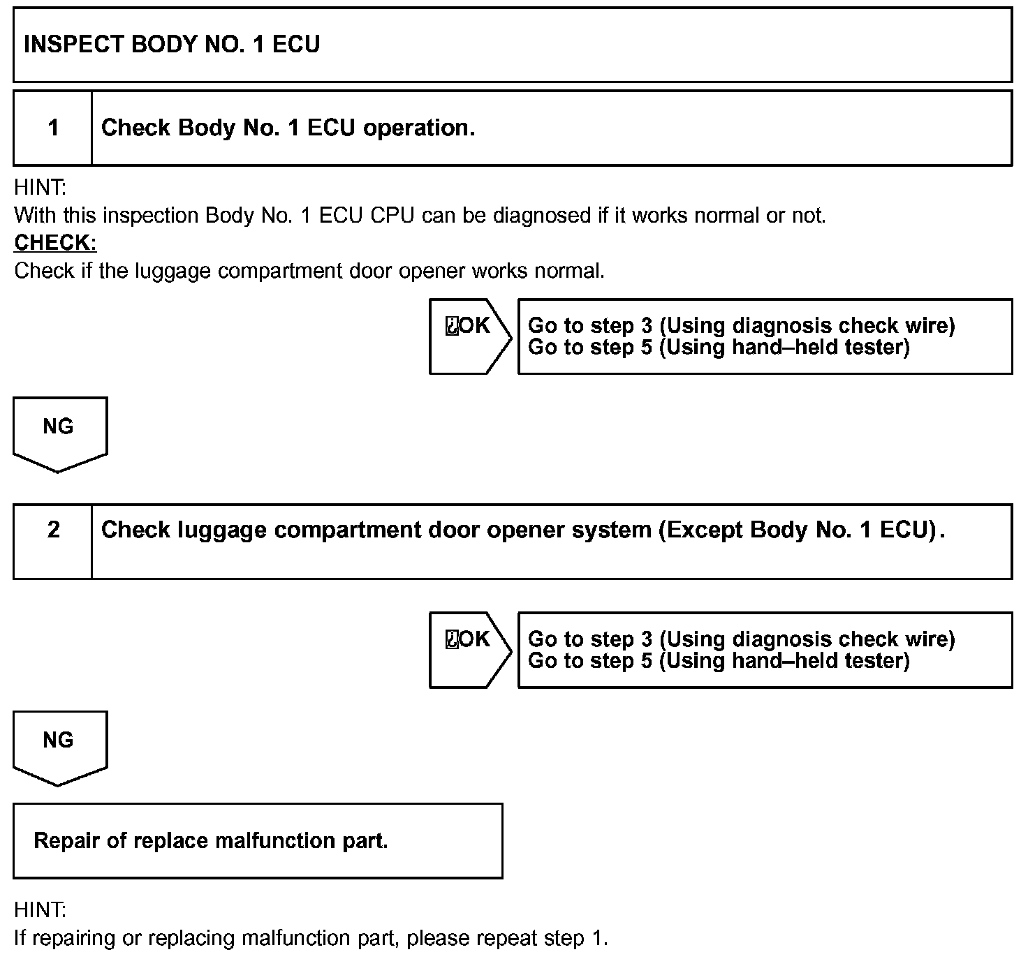 Basic inspection is for checking Body No.1 ECU normal operation.