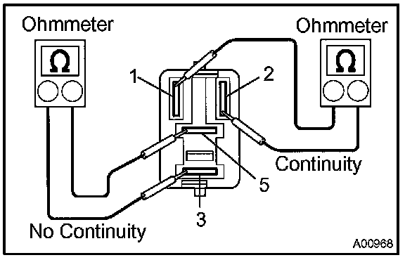 2. Using an ohmmeter, check that there is continuity between terminals 3 and 5.