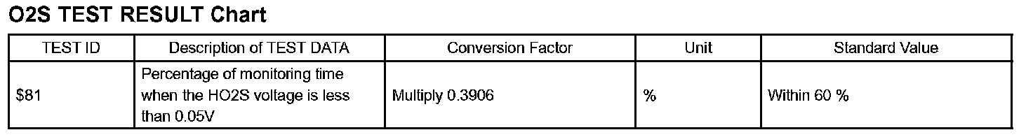 In this data, the description of the O2S TEST RESULT (for O2S related DTCs) are written in a table.