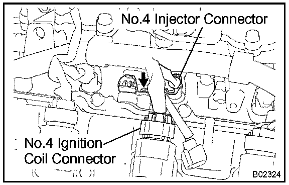 b. Disconnect the engine wire protector from upper intake manifold and bearing cap.