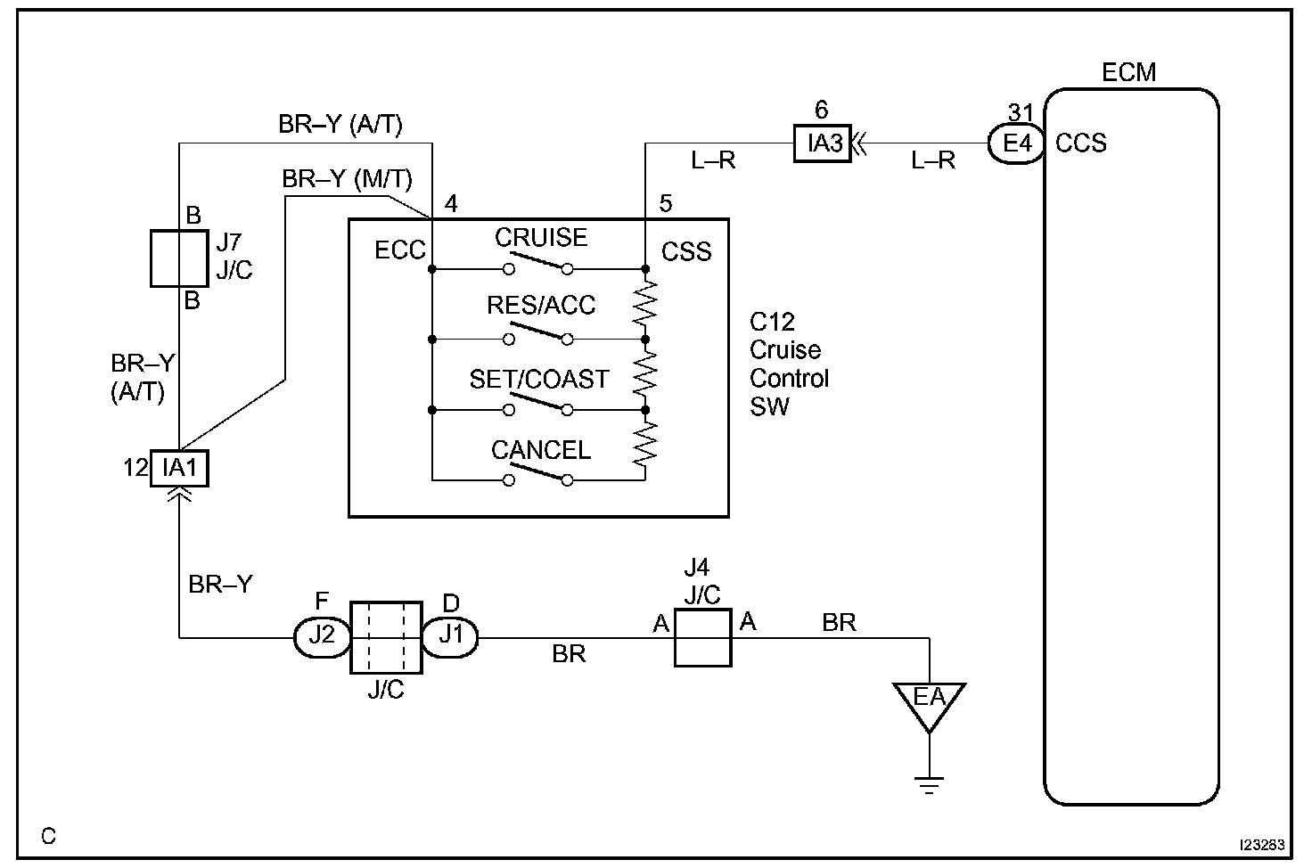 This circuit carries the SET/COAST, RESUME/ACCEL and CANCEL signal (each voltage) to the ECM.