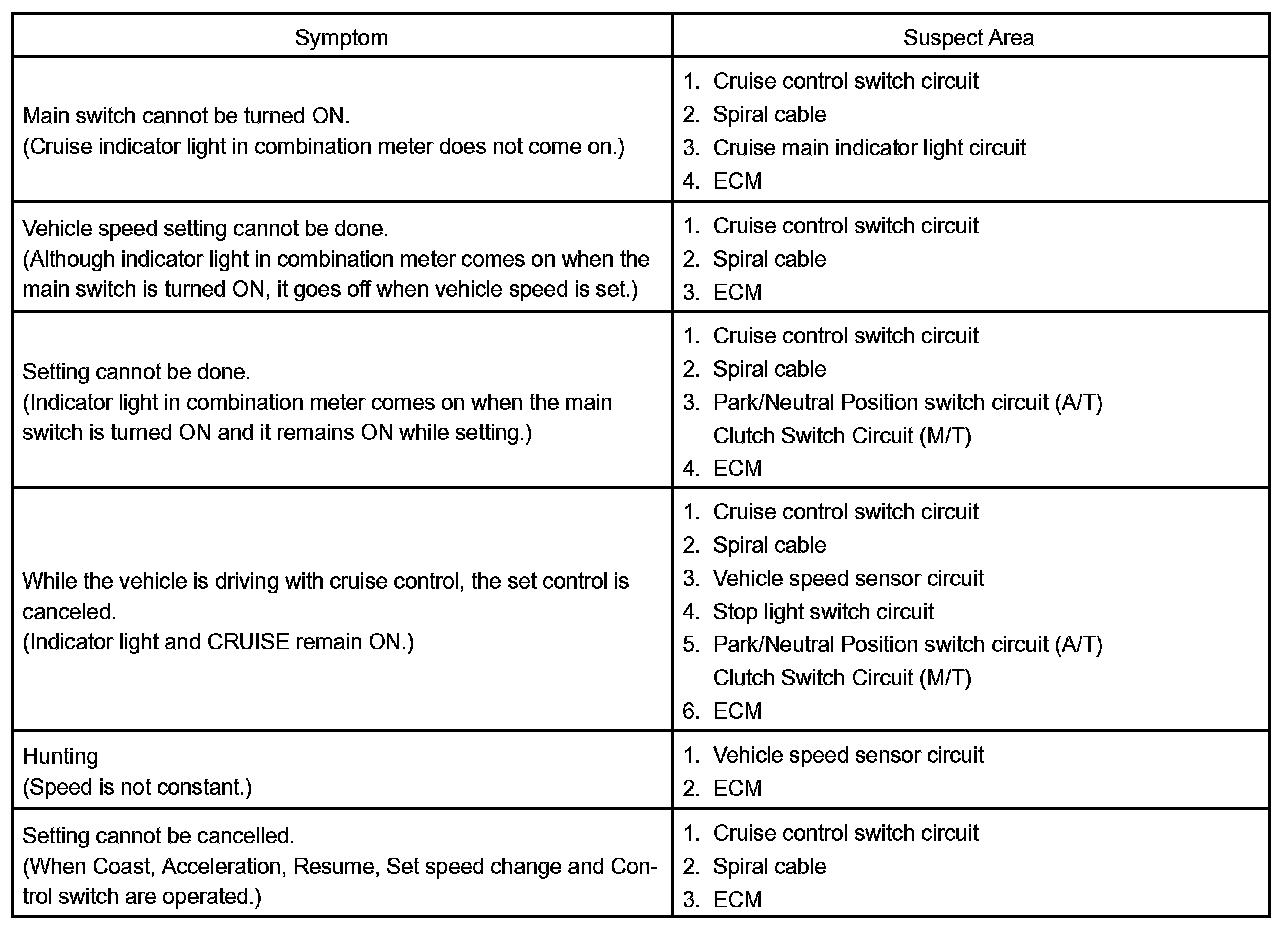 Problem Symptoms Table: