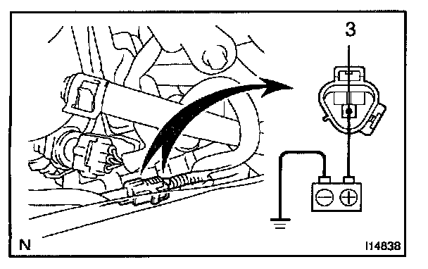 b. Connect the positive (+) lead from the battery to terminal 3 and the negative (-) lead to the body ground.