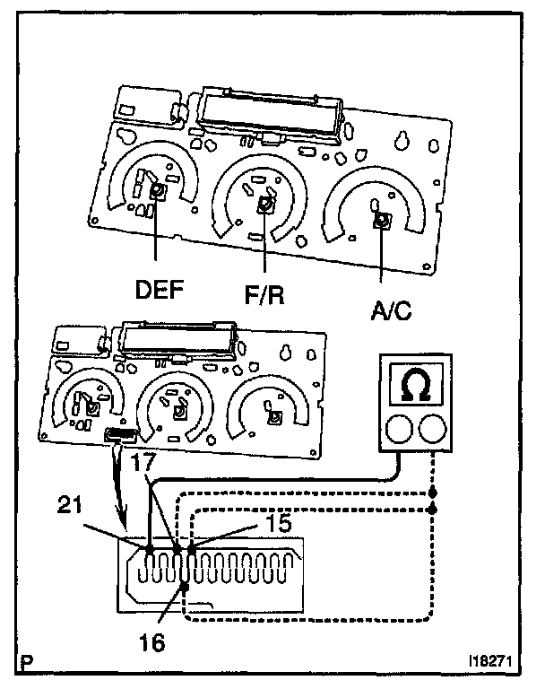 Apply the tester as shown in the illustration to the test for continuity.