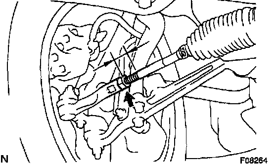 If the toe-in is not within the specified value, adjust it at the rack ends.
